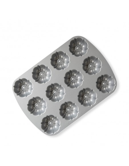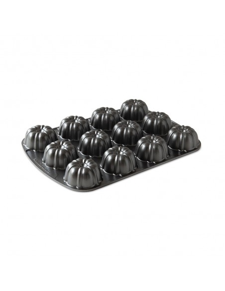 Molde de aluminio fundido para bundts. Medida aprox de cada cavidad: 7 cm de Ancho x 7 cm de Largo x 3,5 cm de Alto. La marca Nordic Ware se caracteriza por ser una marca premium en el mercado. Fabricante líder de productos innovadores, con diseños únicos y exclusivos.