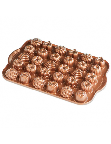 Molde de aluminio fundido para bundts. Medida aprox de cada cavidad: 4,5 cm de Ancho x 4,5 cm de Largo x 2,5 cm de Alto. La marca Nordic Ware se caracteriza por ser una marca premium en el mercado. Fabricante líder de productos innovadores, con diseños únicos y exclusivos.