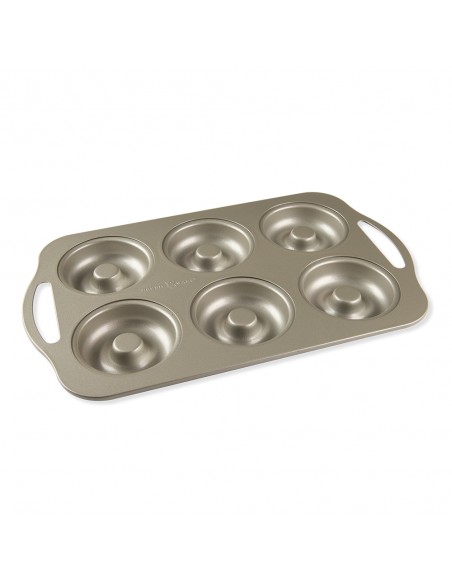 Molde de acero al carbono. Cuenta con una superficie antiadherente hecha sin PFOA para facilitar su desmoldado y una limpieza rápida. Un diseño de asa abierta fácil de agarrar le brinda un agarre sólido al manipular el molde dentro y fuera del horno.