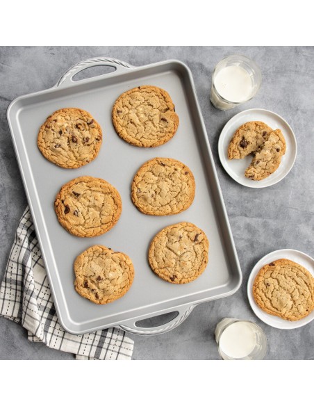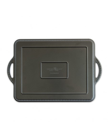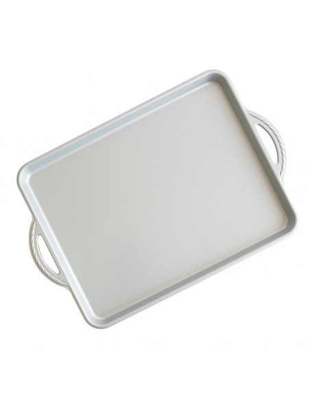 Placa para horno de aluminio fundido. La superficie antiadherente garantiza una liberación perfecta de los productos horneados, mientras que la construcción del borde y la bandeja evitan que se deformen.