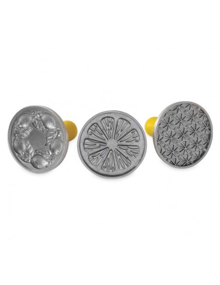 Set de 3 sellos de aluminio con mango de madera. Incluye tres sellos con estilos diferentes relacionados a los cítricos. Se recomienda enfriar los sellos antes de usarlos. Si la masa se pega a ellos, debe impregnarlos levemente con harina o azúcar, o cepillarlos con aceite. Los mangos de madera nunca deben sumergirse en agua. Se sugiere hacer masa para galletas desde cero para utilizar los sellos. Las impresiones no serán definidas si se emplean mezclas para galletas empaquetadas o masa refrigerada. La marca Nordic Ware se caracteriza por ser una marca premium en el mercado. Fabricante líder de productos innovadores, con diseños únicos y exclusivos.